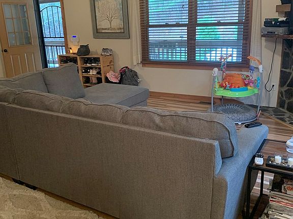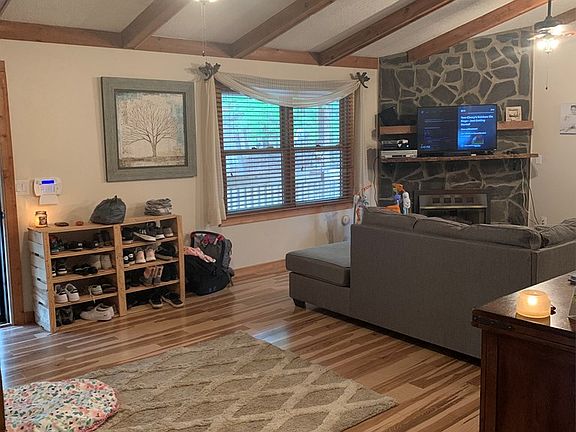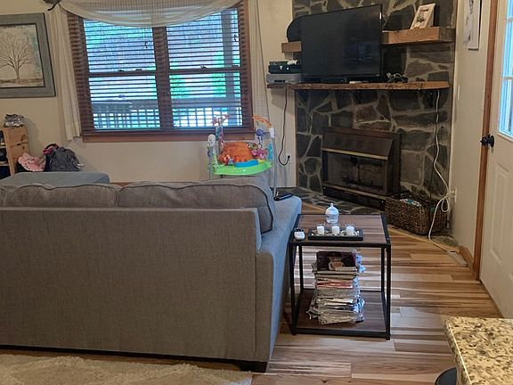 Great log sided home close to Cherokee and Bryson City. Remodeled 2 bedroom with one bath on main level. Open kitchen, dining and living room. Gorgeous granite counters with hickory cabinets in the kitchen with gas oven/range. Living room is huge with gas logs. Full unfinished basement with half bath and laundry area. Outside entrance to lower yard. New septic tank.