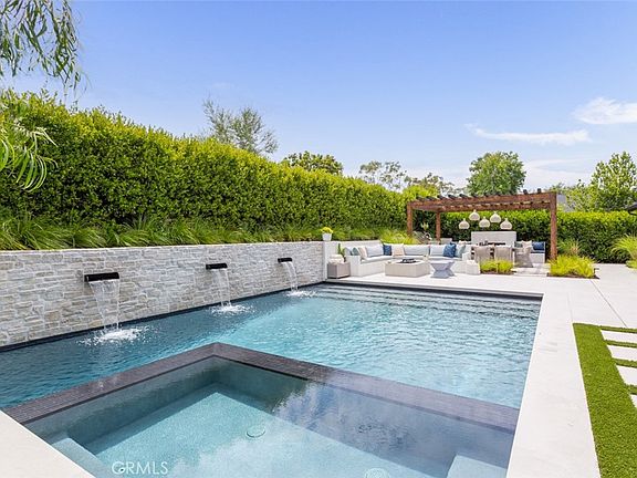 This newly remodeled Baycrest residence in Newport Beach is poised to improve your lifestyle with the simple turn of a key. Located on a quiet street close to Back Bay trails and nationally recognized schools, the single-level design balances a sophisticated aesthetic and a casual, carefree atmosphere that complement every occasion. New exterior spaces extend nearly 9,600 square feet and reflect the talents of CMBrown Landscape through a mix of mature and new plantings, new hardscape and lighting, and a street presence that captivates. The front yard is home to a private dining patio, and the brand-new backyard hosts a saltwater pool and spa, a pergola with top-tier Hestan outdoor kitchen and fireplace, and a separate fire pit with seating for s’mores, late-night chats and after-dinner cocktails. Approximately 2,400 square feet, the three-bedroom, two-bath residence presents a cohesive interior from the pros at Blackband Design. High ceilings, new powered skylights, wide-plank hardwood floors, a custom entry door, and La Cantina accordion doors contribute to a light and airy feel. Open living areas flow seamlessly from one to the other, with a remodeled kitchen acting as the heart of the home. Top-of-the-line Wolf and Sub-Zero appliances are joined by an island with waterfall edges, quartz countertops, Shaker cabinets, open shelving and two under-counter wine refrigerators. Another wine refrigerator is featured in the guest room, which opens to the backyard and displays a custom bath. Upscale modern style enhances the primary suite, complete with a jetted tub, multi-head rain shower, freestanding tub and a patio. Heated marble floors warm both bathrooms, a new 3-zone HVAC system includes an air purifier, and a state-of-the-art Savant smart-home system makes it simple to control indoor/outdoor audio/visual equipment and a security system. The exterior is all new, and a newer roof, custom millwork and a customized two-car garage add to this home’s undeniable appeal.