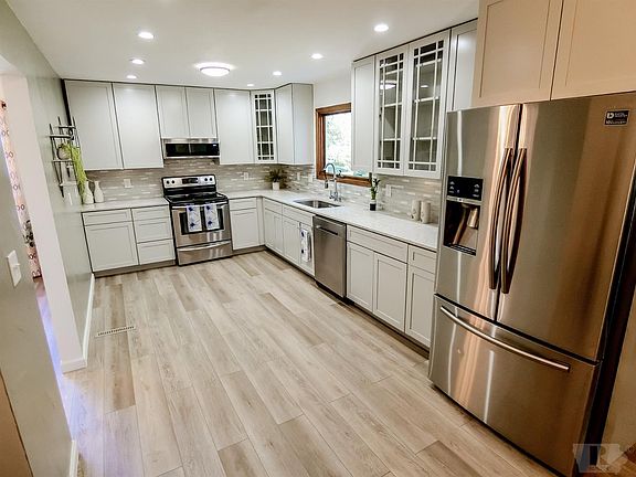 Lots to Love! Call today and take a look at this 3 bedroom - 3 bath home with freshly painted exterior and REMODELED kitchen featuring new cabinets with quartz countertops. Spacious main floor living areas with fireplaces. Open staircase leading up to 3 nice bedroom spaces. Finished lower level with bar area. 2 stall garage and so much more. Call today & take a look - you won't believe the improvements.