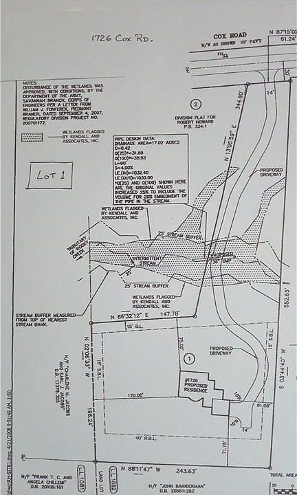 Great lot with site plan approved for single family home. Soil tests and perc test done. New septic permit can be purchased since old one has expired. Water meter box is set. Adjacent lot is also available, both approved for homes. Purchase the full 3.36 (+/-) acres for $350,000. Please call for an appointment if you'd like to walk the lot. Note stream/"wetlands" driveway crossing as constructed.