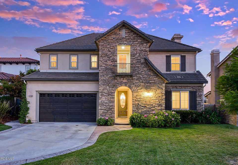 Nestled in the rolling hills of the Big Sky community, sits this beautifully designed home. Thoughtful landscaping and a stacked stone facade give this home a striking curb appeal. As you enter, the dramatic two-story foyer leads you to the formal dining space & gracious living room with a fireplace, plantation shutters throughout, wood flooring & 9' plus' ceilings. Pass through to the heart of the home where your family will spend countless hours. The gourmet kitchen features slab granite counters, ceramic tile floors, ample cabinetry, a large center island & a separate eating area open to the family room. Family Room has a lovely wood mantle fireplace on a raised hearth & a media niche. A bedroom with en suite bath sits off the entry downstairs & is perfect for guests. 2nd level features the master retreat with yet another fireplace, a spa like bath with a soaking tub, separate vanities & walk-in closet. 3 more bedrooms, 2 bathrooms and a spacious laundry room complete this floor plan. French doors off the family room lead to the backyard with covered patio and beautiful view. French doors off the dining room lead to a private courtyard area. The community has miles of hiking and biking trails and a great dog park. Close to shopping & restaurants.