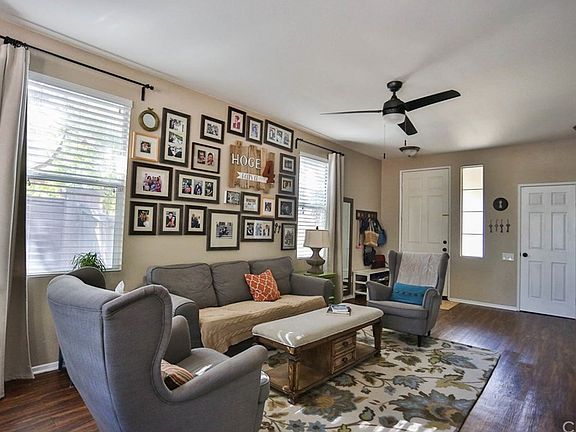 Are you ready to fall in love with this amazing home? Beautiful Single Story home full of upgrades on a flat lot with 3 Bedrooms, 2 full baths in the Low Tax / No HOA area of Oak Valley Greens. This wonderful home offers a fantastic open floor plan, well designed living space with new flooring. Ceiling fans and recessed can lights to keep it light, bright and cool. Ceiling fans, built in cabinets, additional storage, and so much more. Custom upgraded gourmet kitchen and updates and upgrades throughout the home. Remodeled kitchen offers nice granite counter tops and full custom tile back splash with matching stainless appliances. Breakfast bar. Master bedroom is spacious and has a large walk in closet. Remodeled Master bath with full tile step in shower, dual vanities, and much more. This gorgeous home is in a great part of Beaumont with trees, parks, and mountain views. Attached 2 car garage with automatic roll up door has direct access to the home. Backyard offers a nice covered patio, plenty of space, block walls, and low maintenance landscaping. This cute and spacious home is located in a nice quiet neighborhood. Close to schools, park, and freeway. This is a MUST see. This home ready for you to move in and enjoy. Don't Wait, get it while you can. This will not last. We are vets and love our vets, VA financing welcome!!! All financing types are welcome and acceptable.