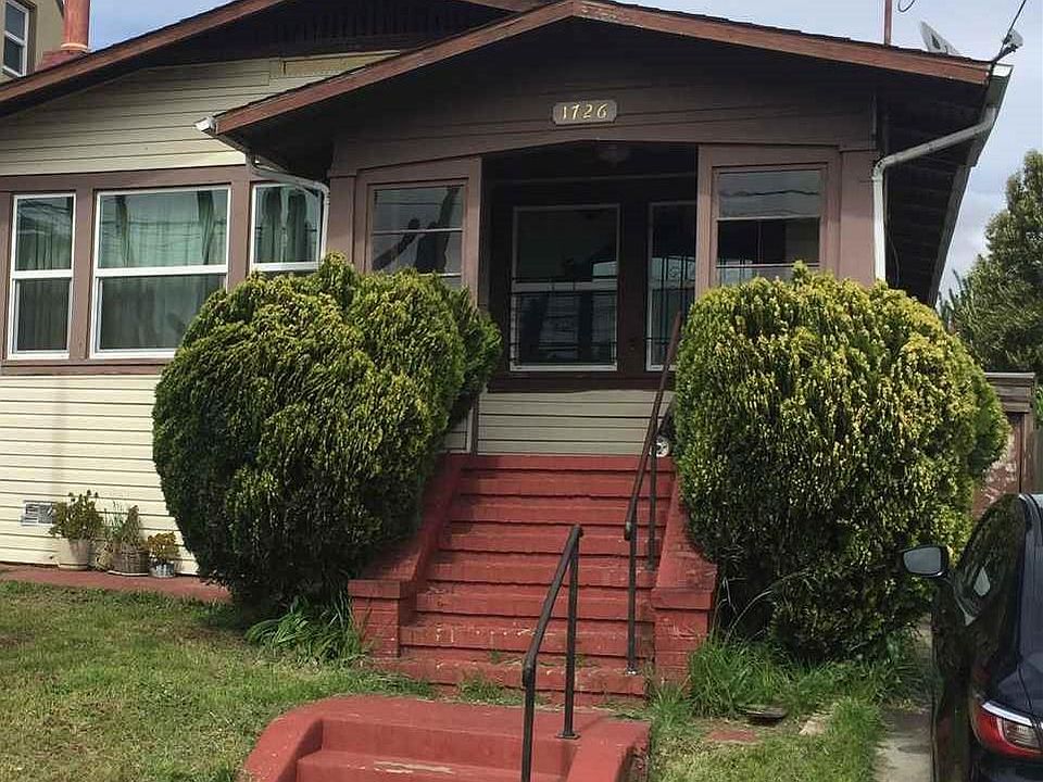 Highland Terrace Craftsman near Highland Hospital, 580, 880, Lake Merritt and downtown Oakland. 3 bedroom 1 bathroom awaits your imagination. Hardwood under carpet. Formal dining room with built in. Wood burning fireplace in living room. Further development potential with large 4900 SF yard. Central heat and air conditioning. Newer windows and doors throughout. Garage with separate entrance ideal for office or workshop.