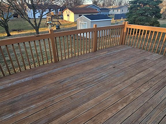Live your best life within the walls of this cozy 3 bedroom, 2 bath ranch home in Algona! Great property for a first-time home buyer or young family, this home is only a few houses down from Garrigan School and features a nice sized kitchen-dining space that is open concept and allows great natural light to flow in from the sliding glass door. Main level also includes a ¾ bath and a great living room with oversized front window. The finished basement has a finished large family rec room, a ¾ bath, and with egress windows in place, there could be the potential for a 4th bedroom. The basement has extra storage space and a laundry area. A single stall attached garage is also with the property. Entertaining will be a must this summer on the large wood deck that extends your family’s relaxation and fun and allows access to the large backyard area with storage shed. So, take time soon to come and visit this great property and begin living your best life at home!