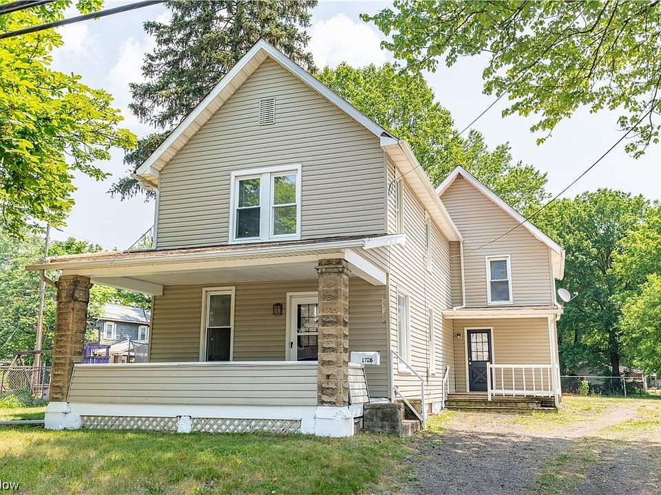 Welcome home to 1726 Erie St S Massillon, OH 44646! This 4 bed 2 bath home is full of upgrades!!! Two covered porches and a back patio makes this a great home for entertaining! When you walk in from the front door, you have the large dining room with a closet, past that you have a huge living room! Off the living room is a large kitchen, perfect for another table or even an island! Updates on first floor include LVP flooring throughout, backsplash, fresh paint, new appliances, curtains to separate the kitchen laundry area, and many more! Off the eat-in kitchen is a full bathroom. Upstairs you have four large bedrooms and a full bathroom. Off the back door, there is access to a small fenced in patio off and the detached two car garage! Schedule your showing today!