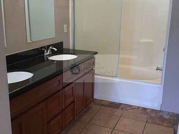 This house has approximately 1,385 square feet with a living room, dining area, laminate wood flooring, blinds, granite & corian countertops, electric range, dishwasher, garbage disposal, laundry room, central heat & air, 2-car garage, front & backyard. W March Ln, turn left onto West Ln, turn right onto Hammertown Dr. Close to school, park & shopping. Pets strictly negotiable (two small pets under 15 lbs, one medium pet under 50 lbs, outside only). Residents are responsible for the Resident Benefits Package. This program handles insurance, utility set up, optional credit building and more at a rate of $31.95/month. More details upon submission of application.