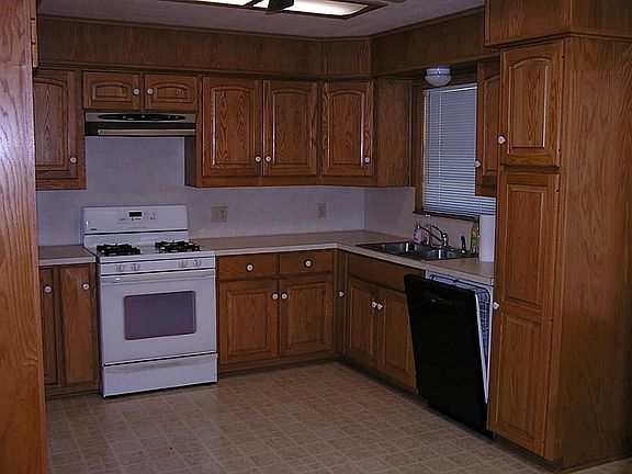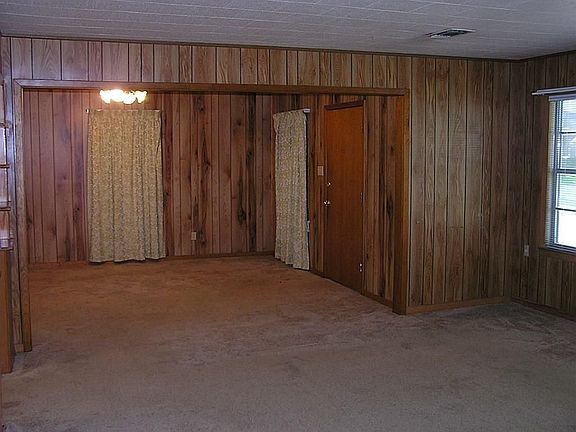 Great starter. Wood paneling throughout. Recently replaced Central AC also has central heat The half bath is in utility with Toilet and sink No Shower. Exterior is vinyl siding with brick. Kitchen features all wood cabinets.Storage building on slab. Back yard is huge with producing fruit trees