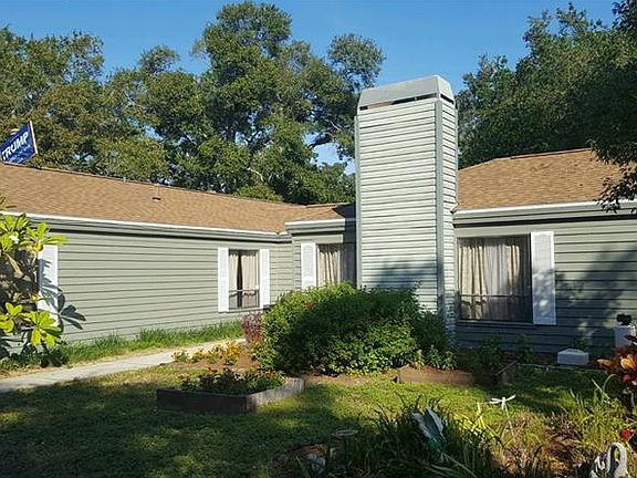 This light, bright, airy home could easily be a three bedroom home. There are two true Master suites, one on each side of the house. All rooms are very large and spacious and the home has had a new roof in 2015 and a completely new AC system in 2014. Both the interior and exterior were freshly painted this summer, and all the laminate and carpet were also new this summer. All counter tops in the kitchen and both bathrooms were just re-surfaced with a high-gloss durable epoxy coating and with proper care have a ten year warranty. There is a brand new patio that leads to the large back yard. Set back off of Lakeview, the property has two massive trees shading the large, circular drive. The lot is a full quarter acre, and this house is not in a flood zone.