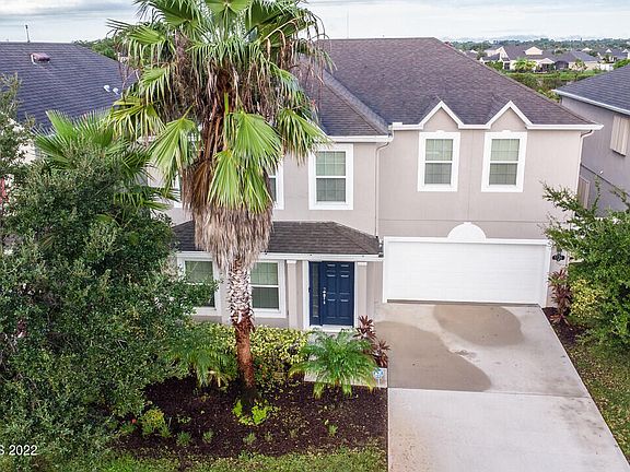 Built in 2014, this 3,655 square foot home boasts 5 bedrooms and 4 1/2 baths! The gorgeous eat in kitchen has granite countertops, 42'' cabinets, and a prep sink in the island. There is a master and en suite downstairs and 2 masters with en suites upstairs! The upstairs laundry room, 2 family rooms, and dining room are sure to impress. Relax out in the large screened in patio with hot tub and enjoy your vinyl privacy fenced yard. This Manchester Lakes community is in the highly sought after city of West Melbourne.