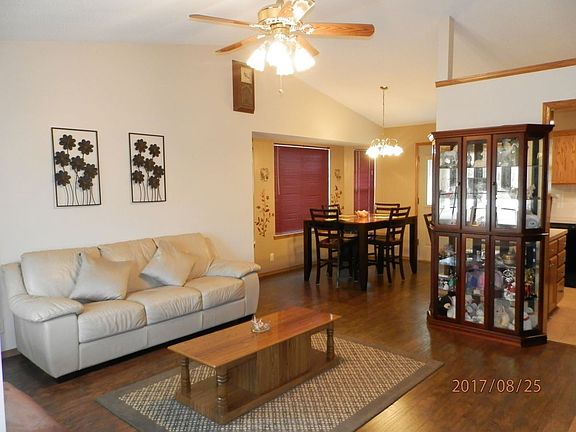 Beautifully maintained and improved 4 bedroom, 3 bath, ranch home with full basement. Spacious open floor plan with wood floors. Nice kitchen has eating bar. Master bedroom with private bath. The basement is finished with family room, play room, bedroom and bath that has a whirlpool tub. (Some minor finish work on trim and flooring) Fenced backyard with tall mature trees for shade over the patio. Great neighborhood within walking distance to High School (catch the bus to other schools in the district). Neighborhood lake.