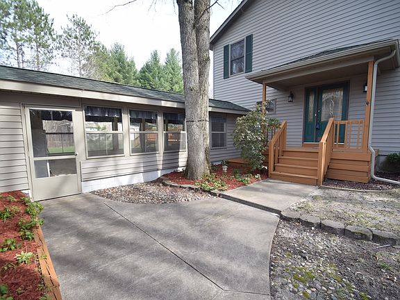 Sharp 4 bedroom home in great country setting! Spacious open floor plan home offering a living room with soaring cathedral ceilings and skylights. Updated hickory kitchen cabinetry. Mega-master suite complete with a 2 person hot tub, balcony, & master bath. 2nd bedroom with en-suite bath. Dining room overlooks deck and woodlands. Screened-in porch off the living room. 2.5 car attached finished and heated garage. 60x40 outbuilding. Located on a dead end road and offering 10 mostly wooded acres plush with deer and wildlife.