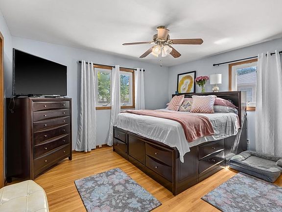 Welcome home to this spacious mid-century home situated on a large wooded lot! This beautiful home has low maintenance brick and vinyl siding and newer windows. The interior has an open floor plan featuring living room with vaulted ceiling & fireplace. The dining room is large enough to seat your whole family. An attached sunroom with a hot tub and doors opening onto the backyard. Two additional bedrooms & bath complete the main floor. The finished basement features a large family room with easy care vinyl flooring & an office. You will enjoy the large backyard sitting by the firepit, or take a walk by the river which is a short distance away. Call today for your private showing!