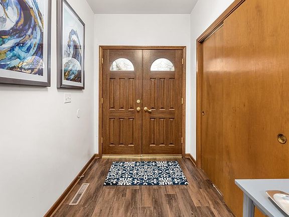 Welcome home to this spacious mid-century home situated on a large wooded lot! This beautiful home has low maintenance brick and vinyl siding and newer windows. The interior has an open floor plan featuring living room with vaulted ceiling & fireplace. The dining room is large enough to seat your whole family. An attached sunroom with a hot tub and doors opening onto the backyard. Two additional bedrooms & bath complete the main floor. The finished basement features a large family room with easy care vinyl flooring & an office. You will enjoy the large backyard sitting by the firepit, or take a walk by the river which is a short distance away. Call today for your private showing!
