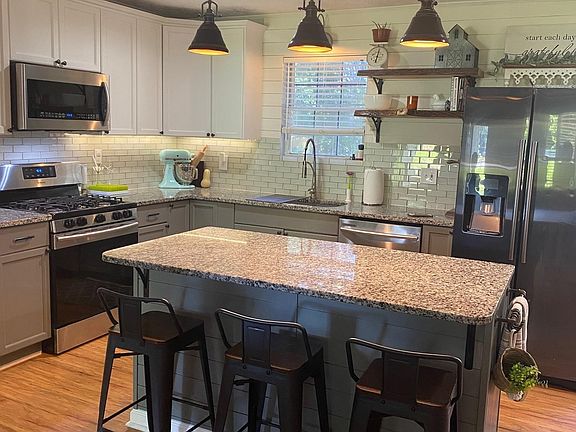 Beautiful house and property. Almost every inch has been lovingly upgraded. Laminate floors in living areas, granite in kitchen, amazing tile fireplace surround of specialty fireplace, dining ceiling is tongue and groove pine, ship lap and wood walls in several places, both baths updated, closet systems in most closets, large walk in closet. 20x 20 pad with posts in backyard ready for a building for many uses, large lot with fruit trees, you will love this special place. Closing attorney Brochstein & Bantley.