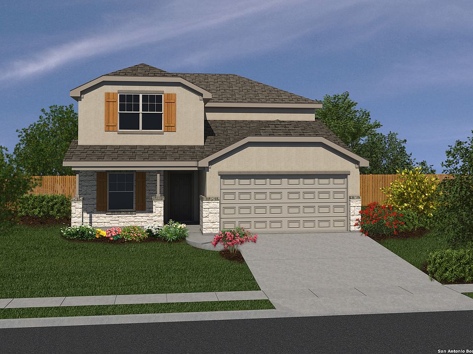 Love where you live in Meyer Ranch in New Braunfels, TX! The Ridgeview floor plan is a spacious 2-story home with 5 bedrooms, 3 baths, game room, and 2-car garage. The first floor offers the perfect space for entertaining with an island kitchen open to expansive living and dining areas! The gourmet kitchen is sure to please with 42" cabinetry, granite countertops, stainless steel appliances, and pendant lights. Retreat to the Owner's Suite featuring a beautiful bay window, separate tub and shower, and a walk-in closet! Enjoy the great outdoors on the covered patio! Don't miss your opportunity to call Meyer Ranch home, schedule a visit today! *Photos are a representation of the floor plan. Options and interior selections will vary.*