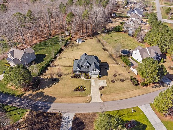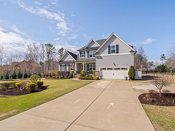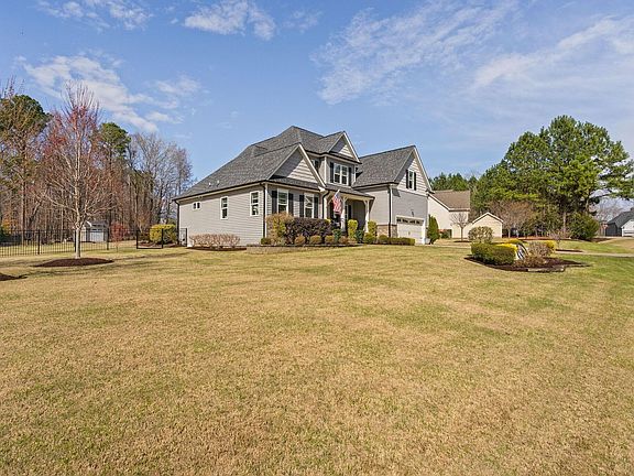 Stunning 4-Bedroom Home on 1.1 Acres - Assumable VA Loan at 2.75%. 4-bedroom, 2.5-bathroom home offers 3,289 sq. ft. of thoughtfully designed living space on 1.1 beautifully landscaped acres with no HOA. The main-floor primary suite features a large ensuite with a soaking tub, shower, double vanities, and abundant natural light. The gourmet kitchen boasts granite countertops, a large island, breakfast area, pot filler, Bosch dishwasher, and a spacious pantry. The dining room with coffered ceilings, open living areas, loft, bonus room, and attic storage provide ample space and functionality. Outside, enjoy a screened porch, black aluminum fenced yard, patio with firepit, lush landscaping with blueberry and fruit trees, and a pool-ready backyard. Additional features include modern fans, an EcoBee smart thermostat, insulated garage doors, and a 10x10 storage shed. Located in a friendly neighborhood with social clubs and pig pickings, this home offers quiet country living while being close to lakes, trails, parks, Wake Forest shopping, and charming downtown Franklinton. Natural gas is available at the street, and an assumable VA loan at 2.75% makes this an incredible opportunity! See virtual tour and schedule your showing today!