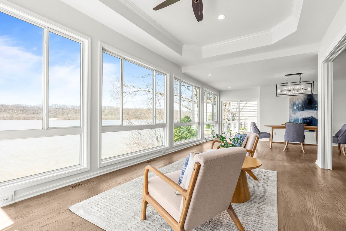 Front Row to Remarkable River Views - just in time for Summer! This Fully Remodeled, Waterfront Retreat offers 95' of river frontage that includes a recently refinished Private Dock, and promises of priceless sunsets. Situated on a .64 acre double-lot at the end of a quiet, dead-end drive, this estate delivers ...