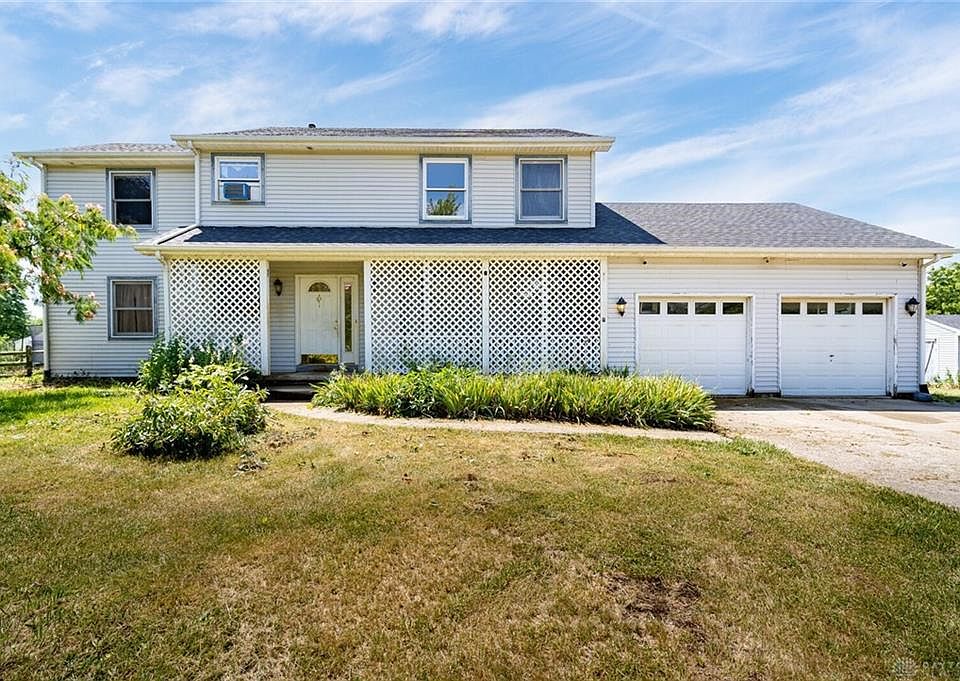 This four bedroom home is situated in Miami East Schools on a ten acre lot. It features over 2400 sq ft of living space not including the full finished lower level that has a walkout to the backyard. On the first floor, there is a spacious kitchen, dining room, living room, and rec room. Four bedrooms are on the second floor. The lower level has a finished family room, an office, and a full bath. The backyard has a large fenced-in area. There are 3 outbuildings. Updates include a roof approx 2 years old, a newer furnace approx 7 years old, radon mitigation, and a wave ventilation system in the basement that brings fresh air into the lower level. The propane fireplace in the lower level has not been used by the current owners. The rear of the property is leased to a local farmer. There are some updates needed to this home. It is priced accordingly. All room sizes are approximate. Property taxes reflect a CAUV and Homestead reduction.