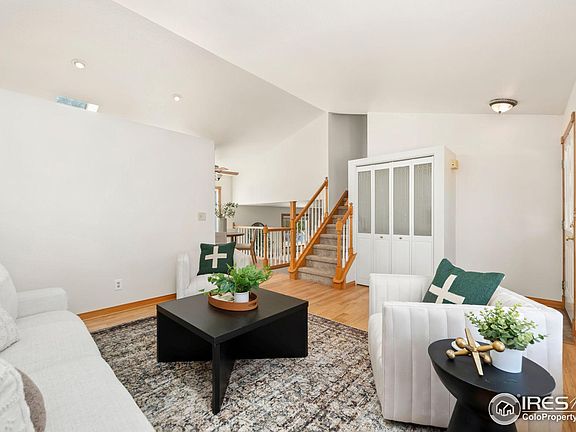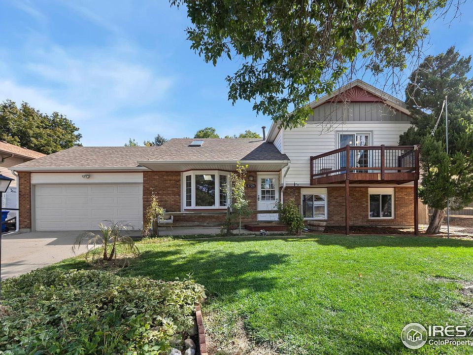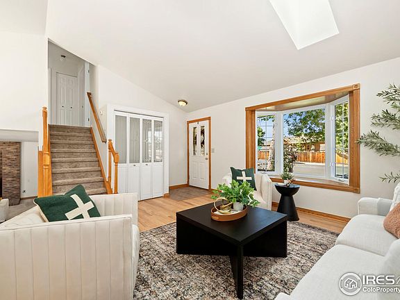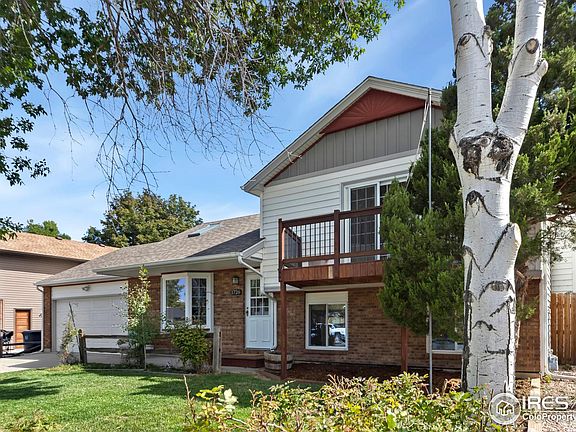 Experience the perfect blend of city convenience and serene country living in this charming southwest Loveland home. Nestled in a tranquil neighborhood close to Ryan Gulch Reservoir, the home offers multiple outdoor living spaces including a covered front porch, a west-facing balcony perfect for sunsets, and an expansive back patio ideal for entertaining or relaxing. The generous lot offers a shed with electricity, ample space to garden, and with no HOA you can park your RV or toys. Inside you're welcomed by beautifully refinished wood floors, fresh paint, and new carpet. The main level boasts detailed trim work, vaulted ceilings and custom cherry cabinets in the eat-in kitchen that overlooks the backyard. Upstairs, find 3 bedrooms including a primary with tons of natural light and an updated shared full bath. The lower level offers a wood burning fireplace in the cozy family room, a versatile 4th bedroom and 3/4 bath. This home is the perfect retreat for anyone seeking comfort, style and outdoor enjoyment.