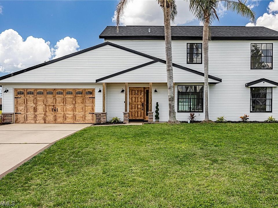 BACK ON MARKET DUE TO BUYERS FINANCING FALLING THROUGH. HAD MULTIPLE OFFERS LAST TIME SO DON'T MISS YOUR OPPORTUNITY!! Welcome to your Modern Farmhouse! This spectacular SW Cape Coral Home is move in Ready! This property boasts 4 Bedrooms and 2 and 1/2 Bathrooms. This home has a BRAND NEW ROOF, NEW A/C, and is Fully Renovated! This home is NOT in a Flood Zone! This home is great for a large family as there is 4 bedrooms, a sun-room, and a huge backyard with plenty of space for a pool! This home has new white shaker cabinets, newer stainless steel appliances, Quartz Countertops, a built in Home Bar with a Wine Cooler, New Sliders, Huge 2 Car Garage, and many more extras! This home is situated on an oversized corner lot near Palmetto Pine Country Club. This property would make an amazing AIRBNB or Vacation Rental! The location of this home is absolutely amazing with easy access to Pine Island Rd, Veterans Blvd, Chiquita, and Skyline Blvd! This property is an amazing deal and will not last long!