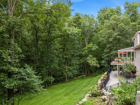 Charming 2-story on 3.57 acre private wooded lot. Gorgeous landscaped with stone retention walls & perennial plantings. Huge 30 x 29, 3 car garage with 8 foot doors. Composite deck, spiral staircase leads to huge partially covered stamped concrete patio. Hardwood(some with inlay) & hard surface flooring thru-out all levels of home. Kitchen features white cabinets, granite counters & updated stainless steel appliances. Great room with 5" crown molding & raised hearth WB fireplace. Huge main floor laundry with lots of cabinets. Formal dining rm with box window & plantation shutters. Vaulted master suite. Bath features sep shower, double sink & jetted corner tub. Walkout finished LL includes large family room, office & full bath. Crown molding, chair rail & wainscoting. 2014 roof, 2013 Zoned HVAC, 80 gallon water heater. Ext freshly painted, 2 200 amp elec. services. Outstanding Internet access. Parking pad is 50' deep.