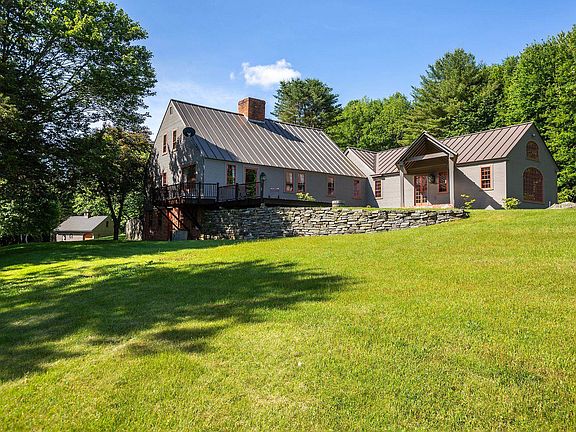 A circa 1734 Cape, displaying authentic detailing of museum quality, in a setting worthy of a Vermont Life Magazine cover! From a New Hampshire location this Cape was patiently dismantled, with components meticulously cataloged, and then relocated to an idyllic Vermont hilltop setting! The interior reconstructed with attention to original design will please the most discriminating early New England architecture connoisseur! Authentic post and beam construction, gunstock corner posts, exposed beams, wooden ceilings, extraordinary wide board floors, 4 brick fireplaces, wide board sheathing and hand planed surfaces are revealed throughout! The advantage of contemporary mechanical systems, with full size cement basement and whole house back up generator are unobtrusive nods to present day conveniences! While this classic Cape features traditional format of family oriented rooms and kitchen on the ground floor, with bedrooms above, the owners have tastefully created a privately sited ground level primary bedroom suite to accommodate often sought practicality of a large ground level bedroom, through constructing a 30'x20' wing onto the residence. With vaulted ceiling and dramatic windows framing views of the pond and distant hills, this bedroom easily becomes a favorite room! Completing the expansive 154 acre estate is a private guest cottage with 4 bay garage below, a large swimming pond, equipment storage barn and extensive trails. An authentic Cape without antique home worries!