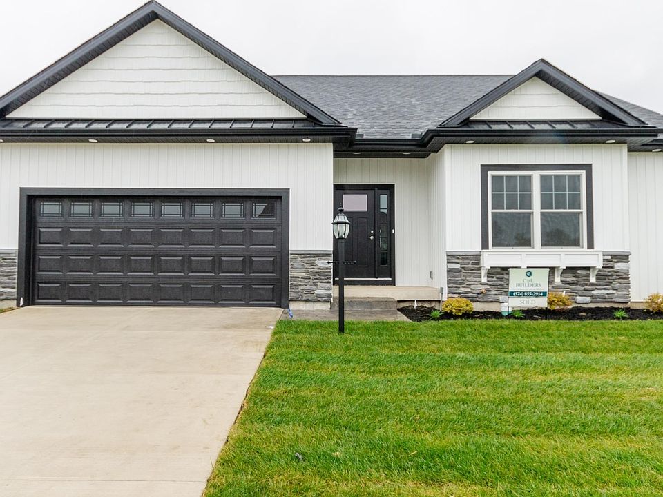 621A UNDER CONTRACT New Construction by Lara Luxury Homes managed by C&L Builders. Craftsman style ranch home with a lookout basement located in Reverewood Estates. Conveniently located close to the bypass for easy access to Mishawaka, South Bend, and Elkhart. Beautiful stone accents and flower boxes grace the exterior. Great room features vaulted ceilings and opens to the kitchen with quartz countertops, tile back splash, and island with full appliance suite. Sliding door to the 14'x14' deck off the dining area. Enjoy an open split bedroom floorplan. The master bedroom has a walk-in closet, tile shower, tile flooring in the bathroom, and a dual sink vanity. 2 additional bedrooms share a Jack and Jill bathroom. Main floor laundry and guest power room. Full basement is ready to be finished - has two egress windows and is plumbed for a bath. Home has city water and sewer and is in the popular Mishawaka school district. Secure this home early to pick out your own finish selections.