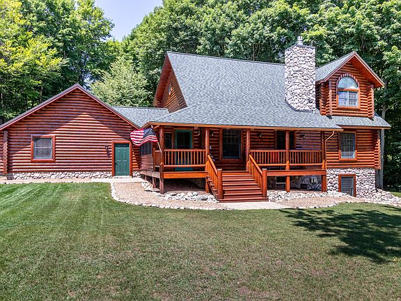 This warm and cozy log home awaits you! Located on the 18th fairway of Chestnut Valley Golf course, this is the perfect Northern Michigan location to call home! Grab your clubs and jump into your cart and head out for a round of golf right from your backdoor! This spacious 3-bedroom, 3 bath home has a lot of charm. Enjoy an evening in the living room in front of the large floor to ceiling stone fireplace. Entertain your friends and family in the open concept kitchen and dining room.