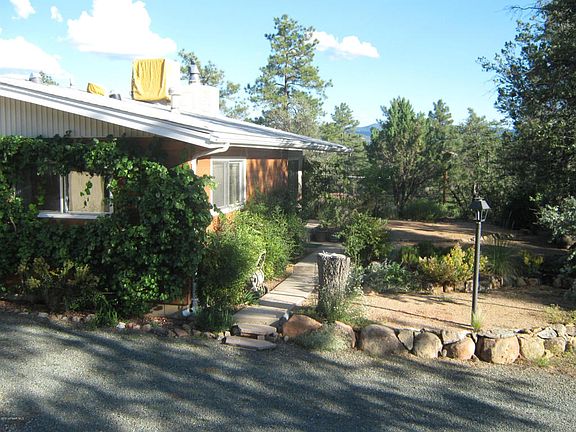 Solid little home with beautiful hard wood floors on a full acre 5 minutes from Downtown Prescott! Boulders and trees, hillside backdrop, private setting. City utilities. Views through the trees are Thumb Butte, Bradshaw mountains. Pet friendly property. $50 per pet per month additional . 2.75% City of Prescott tax added to rent. Property available September 4th. Security deposit of $2000. Applications through Zillow are accepted.
