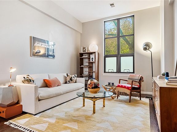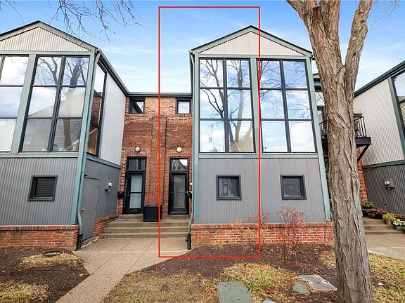 1726 Wharton St: modern, light-filled 2-story delight hidden in plain sight in private, gated development with coveted off-street parking & lovely manicured common grounds in the heart of the South Side, steps from Great Allegheny Passage & Carson St. Floor to ceiling architectural windows on 2nd floor landing leave nothing on the table! The sunken living room and sky-high ceilings offer a variety of options to configure furniture for urban living, work from home, entertaining, & more. There's plenty of space for a full dining table and comfy seating area. The kitchen features newly installed (2024) cabinetry, floating countertops, all new appliances, and a walk-in pantry. Bonus enclosed storage next to the front door. Ready to go upstairs? After you're done feasting your eyes on these massive windows, head all the way back to a primary bedroom with double closets, a full bath, second floor laundry with room for additional storage, and a second bedroom, loft, or sitting room space.