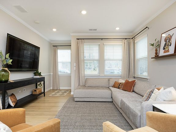 Built in 2023 and thoughtfully designed for today's lifestyle, this end-unit Newbury plan in Apex offers 5 bedrooms and 5 full baths across three spacious levels, making it ideal for multigenerational living, guests, or flexible work-from-home needs. The first floor features the versatility of a guest bedroom suite or home office, while the spacious gourmet kitchen with quartz countertops opens seamlessly to the dining and family room—creating the perfect layout for everyday living and entertaining. A bump out area in the garage provides valuable space for a workshop, storage, or toys. Upstairs, the private owner's suite is complemented by a loft, two additional bedrooms, and a convenient laundry room with sink. The third floor adds even more flexibility with an additional bonus room and a full guest suite, perfect for extended stays or private living quarters. Located in the Villages at Westford, residents enjoy exceptional resort-style amenities including indoor and outdoor pools, a 24-hour fitness center, pickleball court, sand volleyball court, basketball court, and playground. and two leash-free dog parks—all for a $215/month average HOA, an outstanding value for the lifestyle offered. This prime Triangle location is minutes from major highways and just one mile from Sweetwater Community and Town Center, putting shopping, dining, and entertainment within easy reach. Offered at $600,000, this nearly new Apex home delivers space, flexibility, and an exceptional community experience. Love where you live, work, and play.