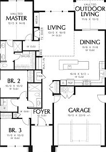 This one-story home has a modern architectural style with open spaces. The floor plan includes 3 bedrooms and 2 bathrooms. The kitchen is open to the living area and includes a walk-in pantry and large island with a prep sink. The master bedroom is located right off of the living room and has its own bathroom and walk-in closet. There is also a two-car garage that has plenty of space for storage. This plan can be customized with multiple architectural styles and options to fit your personal style.