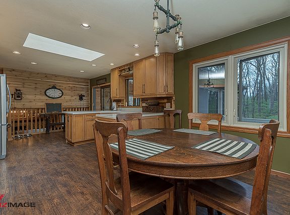 PRIVACY ABOUNDS THIS AMAZING RUSTIC, UNIQUE & UPDATED 3600 SQ FT HOME NESTLED ON 1.25 ACRES OF SERENE WOODED PROPERTY. FEATURES: NEW GOURMET KITCHEN WITH MAPLE CABINETS, CORIAN COUNTERS & STAINLESS STEEL APPLIANCES; BREAKFAST AREA WITH BAY WINDOW; FAMILY ROOM WITH COZY STONE FIREPLACE; FORMAL LIVING ROOM WITH BAY WINDOW AND CROWN MOLDING; GLEAMING HAND SCRAPED HARDWOOD FLOORING THROUGHOUT; 2ND FLOOR LAUNDRY; 4-SEASON ROOM OFFERING PRISTINE VIEWS OF NATURE; RECREATION ROOM WITH BAR & BUILT-IN AQUARIUM; MASTER SUITE WITH VAULTED RUSTIC WOOD CEILING & LUXURY BATH BOASTING WHIRLPOOL TUB, OVERSIZED WALK-IN DOUBLE SPA SHOWER, DOUBLE VANITY & WATER CLOSET PLUS HUGE WALK-IN CLOSET; MULTI-TIERED DECK WITH GAZEBO & HOT TUB; PRO-LANDSCAPED FENCED YARD WITH WATERFALL, KOI POND, PLAYSET, CHICKEN COOP & SHED; 6-CAR GARAGE (ATTACHED GARAGE WITH HEATED FLOOR)!
