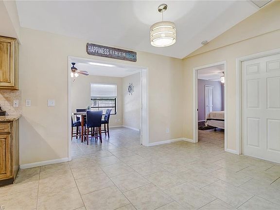 Must see this San Carlos Park pool home only steps away from San Carlos Elementary! Split floor plan with vaulted ceilings. Tile throughout. Updated kitchen that includes stainless steel appliances and granite countertops. Updated bathrooms boast granite countertops and shower to the ceiling tile. Oversized master ensuite offers a walk in closet and french doors that open up to the Florida room. The enclosed Florida room adds additional living space that flows into the outdoor living area. New pool enclosure and 4" concrete slab pool deck. Spacious 2 car garage along with a paved area to the side of the driveway allowing the perfect spot to park your boat or RV.Only minutes away to 41, I-75, GCTC, FGCU, RSW, Coconut Pointe, beaches and much more. All of this and no HOA dues!