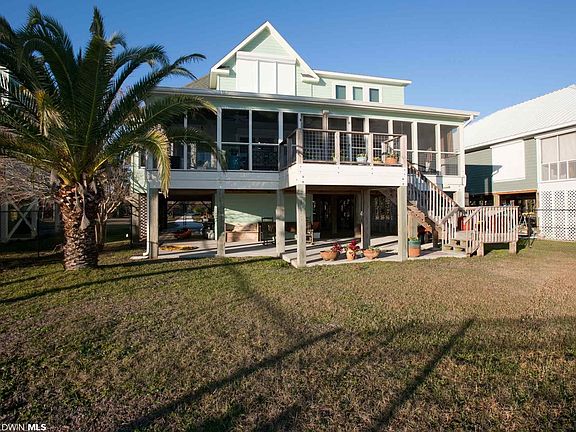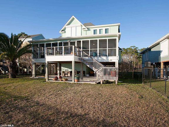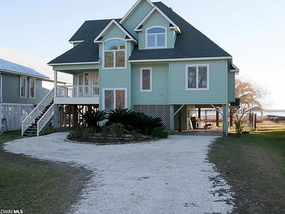 Enjoy sunrises and sunsets from this charming cottage on Oyster Bay! Water front living at it's finest with continuous cross breezes! Less than 10 mins to the Beach, short boat ride to the Gulf. Even better views from 2nd floor master bedroom with sitting room. Situated on Oyster Bay and the Intracoastal Waterway, it's easy to take the boat to Orange Beach, Mobile Bay, or the Gulf of Mexico. 2015 Remodel: A/C, extra bathroom, new larger back porch, Pella windows, plantation shutters, electric hurricane shutters. 2019: Samsung Fridge; 2017 washer/dryer. Granite counter tops, stainless steele appliances, and wonderful views of the Bay. Tons of natural light! Huge, open floor plan. Storage room below plumbed for 4th bedroom. Boathouse includes a 4,500 lb boat lift. Fenced backyard yard, and a huge storage room below. This home is a MUST SEE! 2015 remodel added 495 livable sq. ft. Dining room table set, some prints, and personal items do not convey. No damage to house in Sally, just inches of water in downstairs storage. Boat dock repairs are complete.