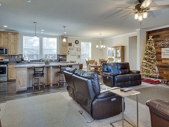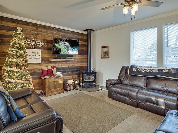 Nicely treed private parcel located on 2.28 acres in Sisters. Property has a 2018 Palm Harbor home w/open floorplan, tall ceilings, wood accent wall in living room, lots of alder soft-close cabinets, including a pantry cabinet, huge kitchen island, stainless appliances. This well-insulated home has spacious bedrooms w/walk-in closets in every room. Master bath has 4' shower and soaking tub, double sinks w/tall counter. The home has a 6'12 pitch roof and a custom entry timber framed porch, home w/upgraded concrete stained lap siding. Outside discover a spacious well-built deck w/pergola, deck storage building, French drain in backyard w/river rock and a private well w/newer pump. The property is partially fenced and includes an RV hookup w/power, water and a separate utility building. Low maintenance landscaping w/rock and a firepit. The large graveled circular driveway allows for plenty of room for parking and access. Foundation is full slab w/block perimeter.