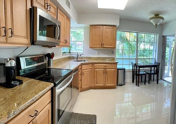 **Available Oct 1 for 12 month lease only**Enjoy this spacious and sunny unfurnished 3/2 condo coach home in the highly desirable Boca Golf & Tennis Country Club. This meticulously maintained garden level corner unit features an attached garage, recently updated porcelain floors, updated modern guest bath, upgraded kitchen cabinetry with granite countertops and stainless steel appliances, large dining space with room for a table to seat 8, full sized washer and dryer in unit, and a screened in porch overlooking green space. Quiet with tons of privacy. Centrally located community features 24 hr. manned security gate, acres of amenities, biking trails, tennis and golf membership availability coming soon! Pets must be less than 20 pounds as verified by a vet certificate. Renter responsible for water, electricity, cable, internet and pest control. Additional fees for tennis and golf membership when it becomes available. In addition to the Zillow application, the HOA requires: - $100 application fee - $76 processing fee per applicant over the age of 18 - $1000 refundable security deposit