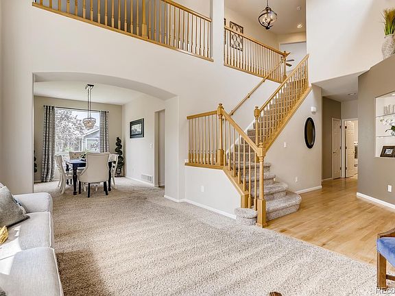 A true gem in Challenger Park Estates! This lovely, well maintained home features vaulted ceilings and a bright and sunny entry into the living and dining room space. The open kitchen has a breakfast nook, an island for additional seating, freshly painted cabinetry, granite countertops, and stainless steel appliances. The loft can be used as an office or study space. Freshly painted exterior, new cement walkways and street facing fencing. New lightening fixtures throughout the home, new sliding glass door, new family room and kitchen area windows. Close to multiple parks, Elementary school, CC trail system, Shopping and E-470.