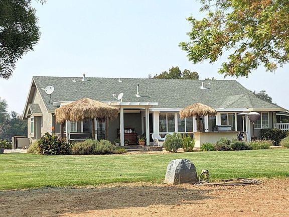 Charm, Character and Lots of Extras live here! Beautifully done open floor plan with breakfast nook, kitchen bar that seats 6+, around a dream kitchen. Large formal/family dining. Spacious living room w/pellet stove, Media wall & recessed sound. Custom master bath with magazine-worthy shower! There is not a bad view in the house. Enclosed porch/tea room (not included in sqft). Outdoors there is a sparkling pool. 2 patio areas, a hot-tub, outdoor kitchen, fire-pit, palapa/cabana. Raised garden beds. 2 outbuildings. The 20 x 30 shop with Car Max mobile lift. Swamp cooler cooled & a built-in neumatic air compressor. The metal RV/Boat cover is 30 x 40 and extra tall. And there is a gym built into the attached 3 car garage. THIS home fits the California Lifestyle!