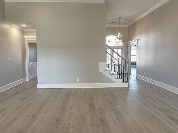 The Timber Ridge Plan B is a two-story home with 3 car side entry garage and is backed by a 2-10 home warranty.. Home has 4 bedrooms (Master bedroom is downstairs), 3.5 baths, study and bonus room. Three bedrooms and a bonus room (or 5th bedroom) are upstairs along with 2 baths. Home has wood plus flooring (Mohawk Revwood) in all living areas and bedrooms. Great Room features 12' ceiling, extensive trim, gas-log fireplace with upgraded fireplace treatment, wood plus flooring and recessed lights and ceiling fan. Study features 12' ceiling, extensive trim, wood plus flooring and walk-in closet and has a half bath next to it -could be a 5th bedroom or a nursery. Dining room has 9' coffered ceiling, wood plus flooring, extensive trim including shadow box under chair rail. Kitchen includes 9' ceiling, custom cabinetry quartz countertops, large island with bar seating, stainless appliances including gas cooktop and double wall wall oven, tile backsplash, wood plus flooring, recessed lighting, and huge walk-in pantry. Breakfast has 9' ceiling, tile or wood plus flooring and extensive trim. Master bedroom has 11' double tray ceiling, wood plus flooring, recessed lighting, extensive trim and ceiling fan. Master bath has 11' ceilings, glamour tub, large tile shower with tile bottom, two shower heads and rimless shower door, separate toilet area, double vanity with granite countertops and huge walk-in closet. The home has hardwood stairs leading to the second story. The additional bedro