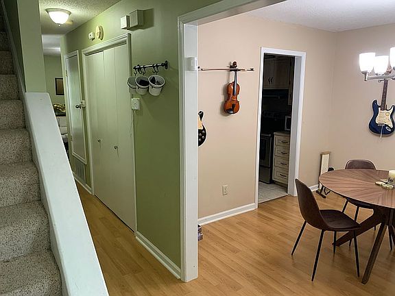 -Downstairs features dining room, kitchen with pantry, living room, half bath, laundry closet, and under stair storage