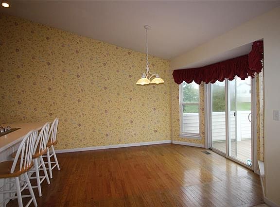 All Freshly Painted Interior Walls! Wonderful 2 Bedroom, 3 Bath VILLA w/ finished walk-out Lower Level! Covered front entry & foyer with hardwood. Upon entry, study/living room to right w/ bay window w/ full bath w/ white cabinets & tub/shower around corner & linen closet near. Open concept floor plan w/ family room / dining room combination w/ vaulted ceiling & open staircase to finished lover level. Master bedroom suite off main floor family room w/ large bay window looking over backyard, large walk-in-closet & 3/4 master bath w/ spacious walk-in shower, dual vanities, tile floor & linen closet. Breakfast area w/ bay window & wood floors is open to kitchen w/ white cabinetry, light counters, wood floors, electric stove, microwave, dishwasher & pantry closet. Laundry room w/ storage closet leads to 2 car garage. Large Walk-Out Finished Lower Level with Family Room, 2nd bedroom, full bath, linen closet & unfinished storage area. Elevated deck off of breakfast area & Security system.