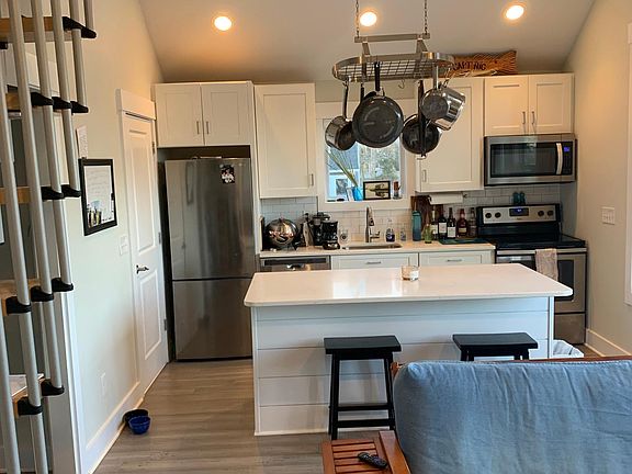 House on Middle Sound Loop Road with views of Pages Creek. Perfect for a couple or 2 roomates. 2 occupants only. There are 2 strutures as a part of this rental 1 unit is 2 story with 2 car garage and carport. Has 1 bedroom, walk in closet 1.5 bath, loft, kitchen and living space. Large deck with views of the creek. Second detached space can be used as a bedroom or living space. Has full bath and walk in closet and it's own heating and air unit. Due to the loft and small steps only 2 roommates or a couple to occupy. Only water included in rent. Washer and dryer in unit. Garbage disposal, fridge, stove, microwave. Mini split in Loft and detached space. Large 2 car garage. Very small fenced area with dog door through the garage. Quiet neighborhood. DOES NOT COME WITH BOATSLIP OR BOAT OR DOCK ACCESS Water only included. Renters pay for rest of utilities. No smoking. Would like 1+ year lease.