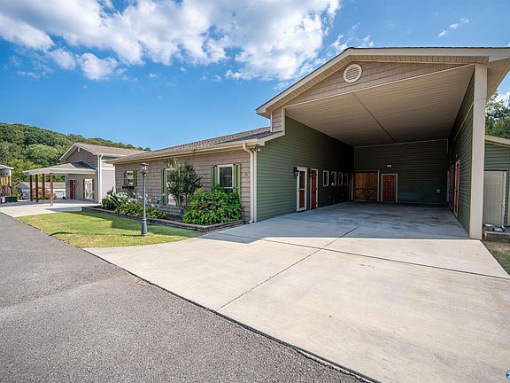 Price Reduced! Lake Guntersville Home on 2 LOTS w/ RV Port & Awesome RV Resort Living! Boat launches in every direction, mins to Guntersville for Lakeside Dining, Fishing & endless Recreation! One of the largest Homes in Resort - Patio Porch w/wood burning Fireplace & Privacy Shades, 40x20x16ft RV Port w/50AMP Hookup, 3 drains, parking for vehicles, Jet Skis, golf carts etc. Inside you'll love the Chef's Kitchen w/ commercial Frig, Gas Stove, custom cabinets, Huge Living Room w/ Fireplace, Luxury Main Suite, Lg Guest Bedroom, Office & cooled Workshop!- The Clubhouse Amenities - Pool, Gym,Venue,Kitchen,Library & Card Room! Easy commute to Huntsville AL! Be sure to check out video included!