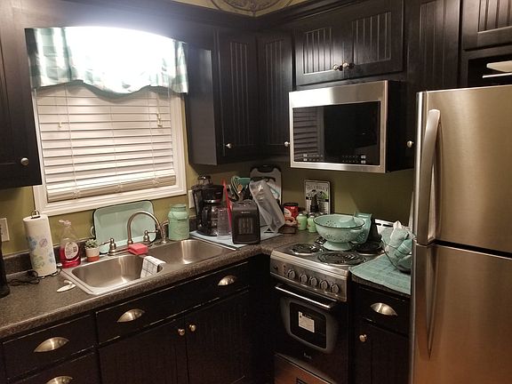 Located in Blue Heron RV resort. 2 bedroom, 1 bath, living room, and kitchen. Large covered back porch. Furnished. New stainless appliances. Site #84. 40 foot covered RV parking pad.