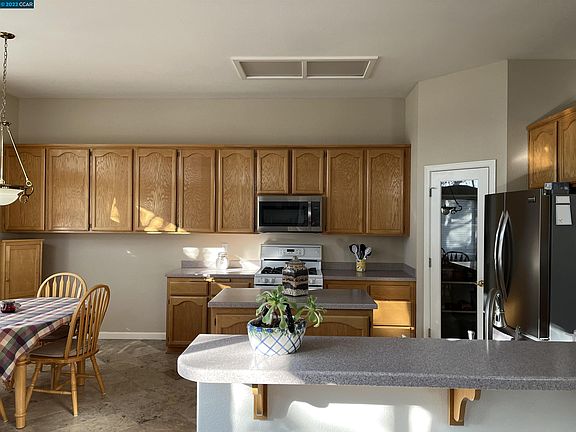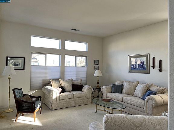 Large single story home in gated 55+ community. Has a 3 space garage, one is for the golf cart. This unit is right next door to the clubhouse and pool, so you can just walk right out the door and go to a meeting, class, swim or HOA trip. Extensive tile and upgrades inside. 2 large bedrooms and 2.5 baths. Overlooking the golf course and fountain in panoramic fashion from the house and patio area. Both Living and family rooms, formal dining area, bar, Tile roof. Great Location.