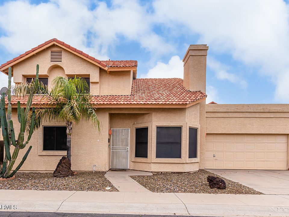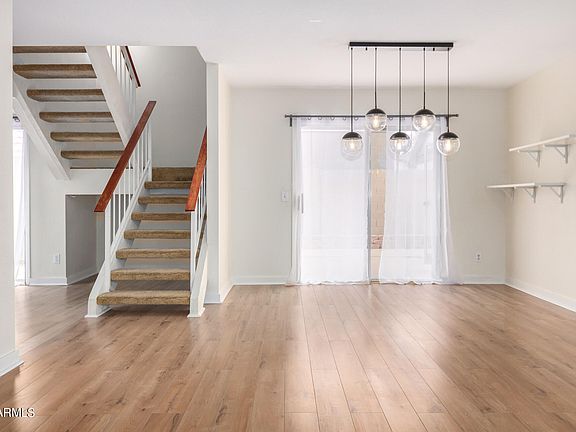 3 bedrooms, 3 bathrooms plus a loft, 2 car garage and private backyard. Great open floor plan with soaring ceilings! New laminate wood flooring downstairs. Upgraded kitchen with finished concrete counters, decorative back splash, custom farm style copper sink, newer black stainless LG appliances, movable butcher block island and custom cabinet hardware. Perfect dining area off the kitchen overlooking the large family room featuring natural light plus a wood burning fireplace. Large bedroom and full bathroom downstairs. Two sliding glass doors to the backyard extended patio plus a service door from the garage. Master with vaulted ceilings, garden tub, tile floors and surrounds. Updated fixtures. Excellent Chandler location close to freeways, schools, shopping and other lifestyle services.