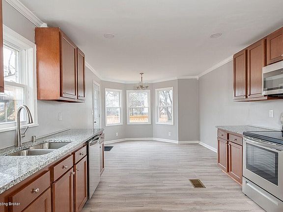 Amazing renovation on this 3 Bedroom 3 Bath bedford stone Ranch with a full basement in Shively. Big rooms with lots of large windows and natural light. This home has been completely remodeled with all new Kitchen cabinets, granite counter tops, and new stainless steel appliances. All new bathroom fixtures, new ceramic tile, and vanities. New flooring throughout, as well as new trim work, new light fixtures, recessed lights, and much more. The outside has a new deck, new windows and gutters, new Roof, new central air unit, Garage, huge rear yard, and large patio with stone BBQ area. This home is larger than it looks, with 1,496 square feet on the main floor, plus over 1,200 square feet in the partially finished basement.