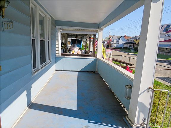 Spacious home with a large front covered porch and great level yard. One car detached garage in rear.
