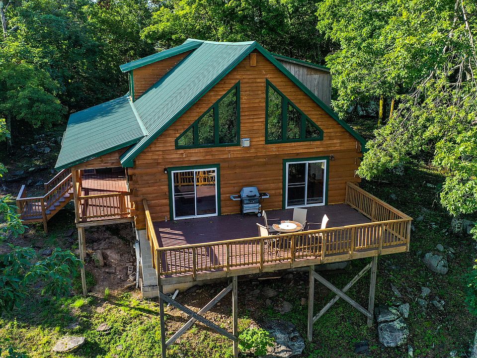 UNDER CONTRACT Log Cabin tucked away at the top of the mountain in Monroe County. Situated on 2,7 acres that boarders the National Forest. Beautiful mountain views from large open air deck. Open floor plan with Kitchen , Dining and Living area with vaulted ceiling and soap stone wood stove. 2 bedrooms and 2 baths on main level and 2nd level features master bedroom with fireplace and private bathroom. Enjoy privacy and long range views of the area. Easy access to the Hanging Rock Observatory and lots of outdoor activities that Monroe county offers. Covered front porch and open decks complete this Get Away property or make this your full time residence.